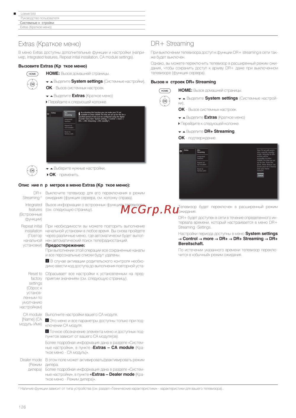 Изучите дополнительные функции и настройки вашего телевизора. Узнайте, как использовать меню Extras для управления встроенными функциями и сброса настроек.