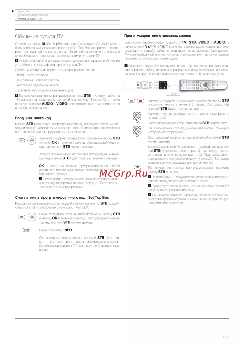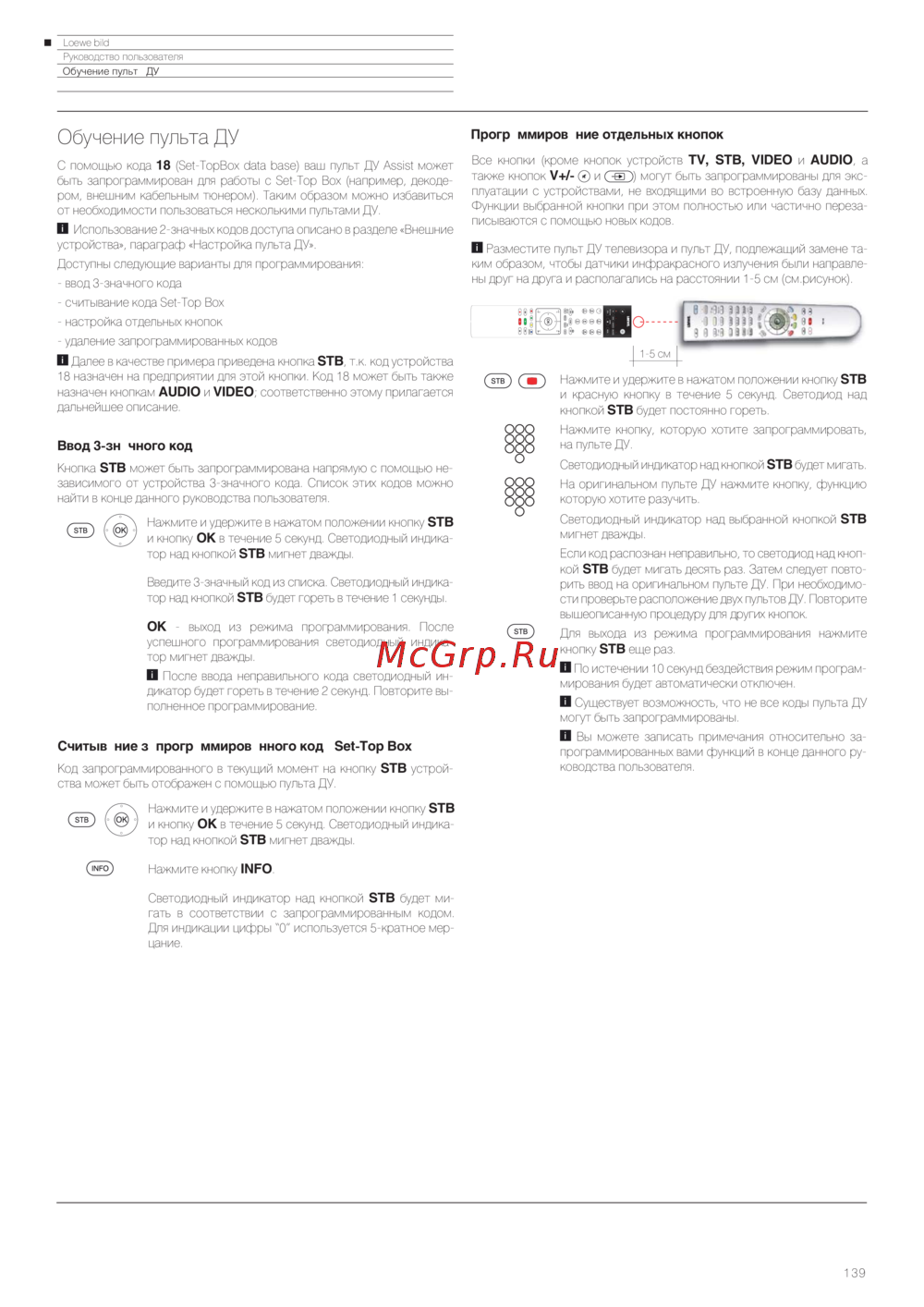 Кнопка STB может быть запрограммирована напрямую с помощью не-