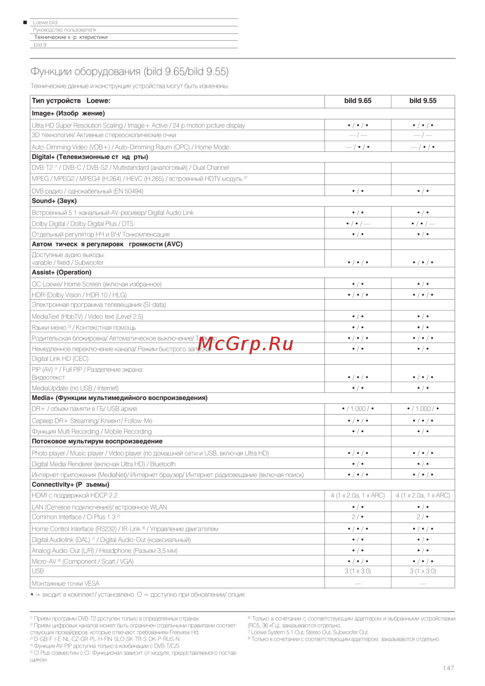 Тип устройства Loewe: bild 9.65 bild 9.55