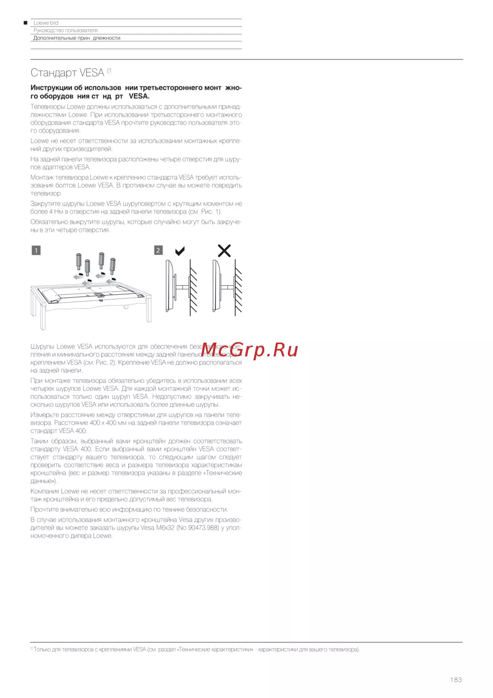зования болтов Loewe VESA. В противном случае вы можете повредить