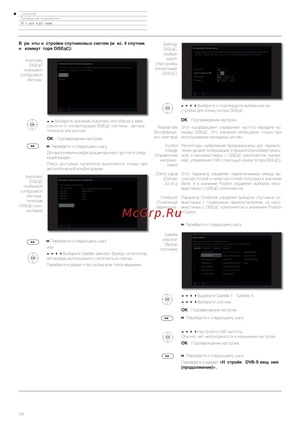 мер, управление LNB с помощью коммутатора DiSEqC).