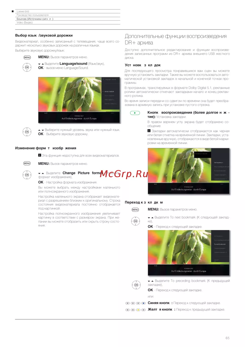Узнайте, как выбрать язык и звуковую дорожку, изменить формат изображения и использовать закладки для удобного просмотра видео. Подробные инструкции и советы.