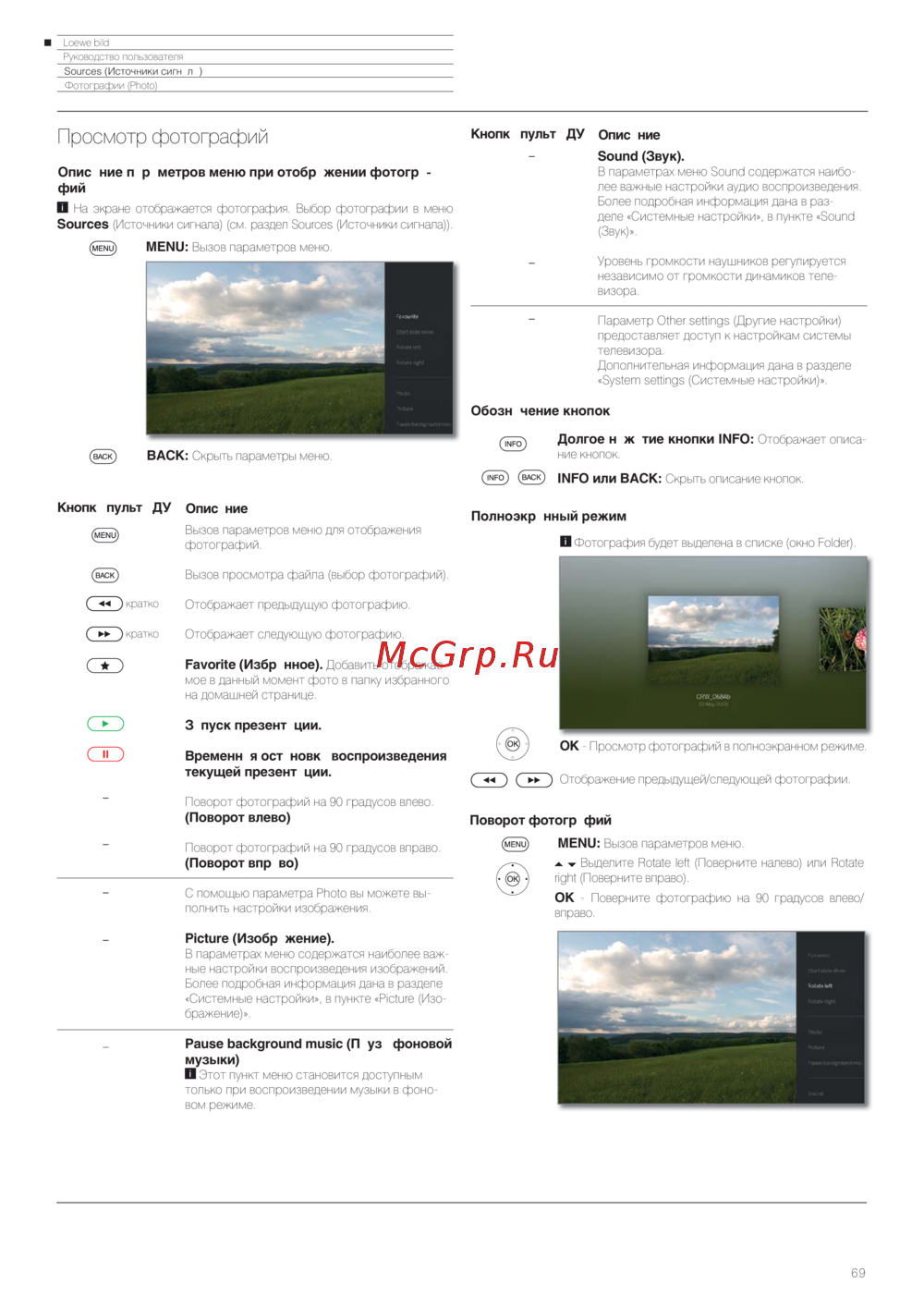 Узнайте, как просматривать и управлять фотографиями на экране. Настройте параметры изображения, используйте функции поворота и добавления в избранное.