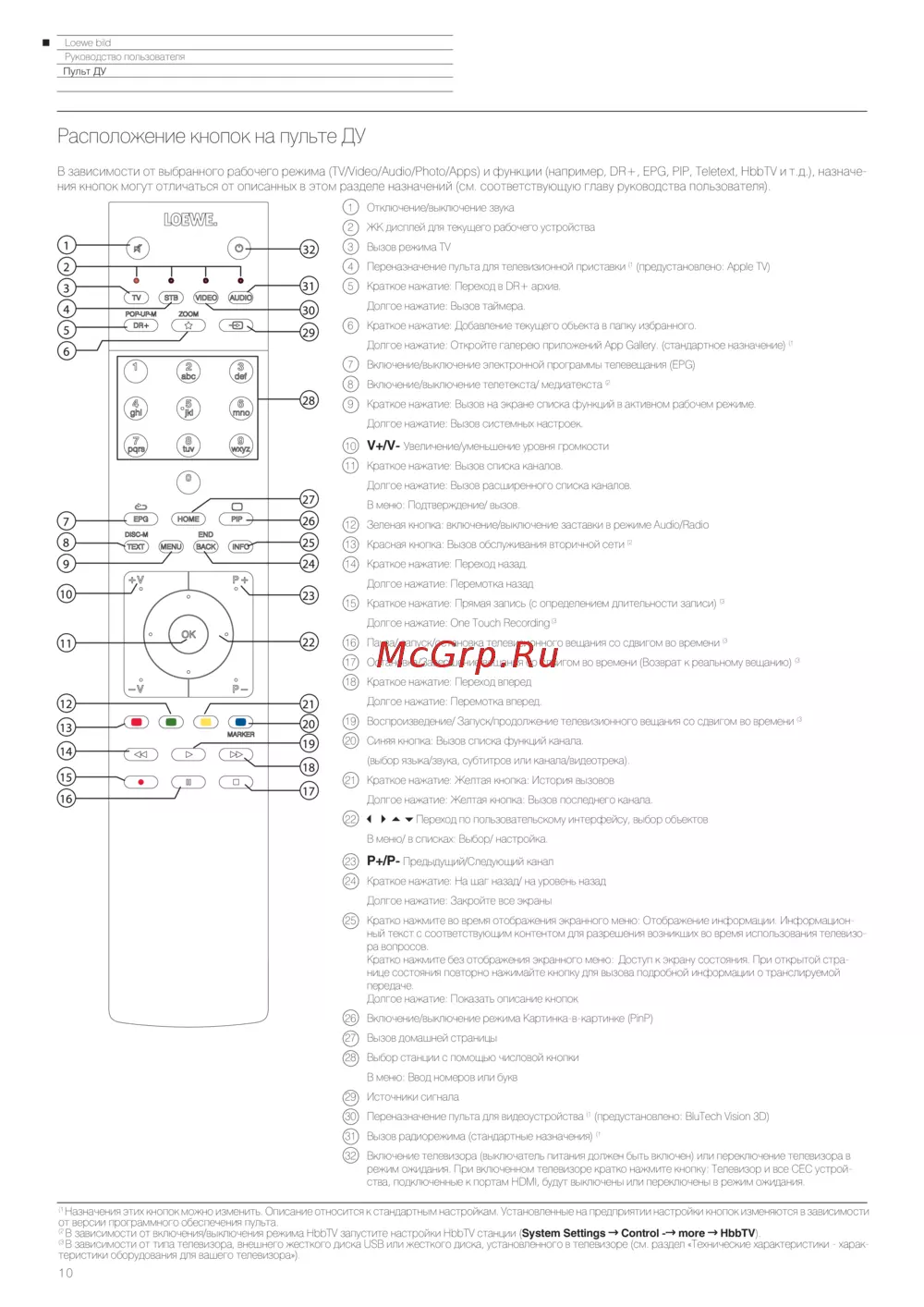 Loewe Bild 3.43 Light Grey — руководство пользователя пульта ДУ: функции и назначения кнопок [10/204]