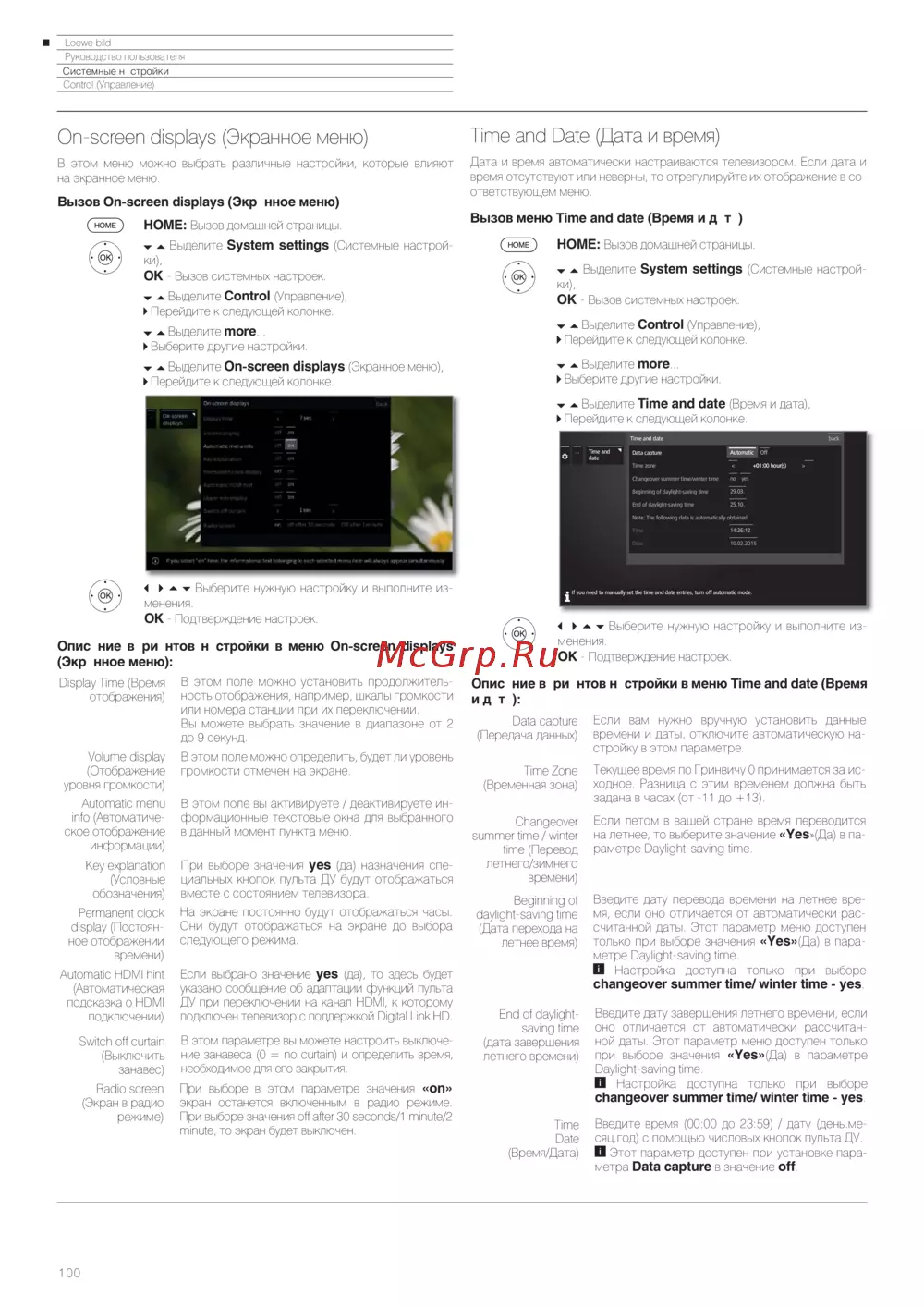 ![Loewe Bild 3.43 Light Grey [100/204] Описание вариантов настройки в меню time and date время и дата](/views2/1453304/page100/bg64.png)