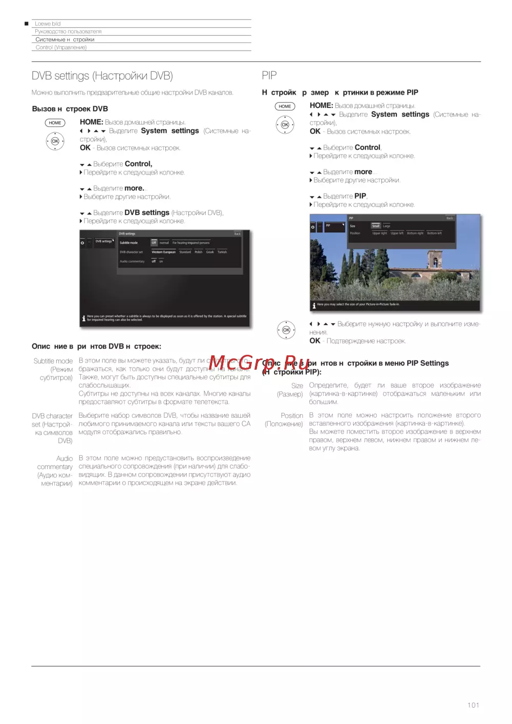 Loewe Bild 3.43 Light Grey — настройки DVB: Субтитры, Аудио и PIP для вашего устройства [101/204]
