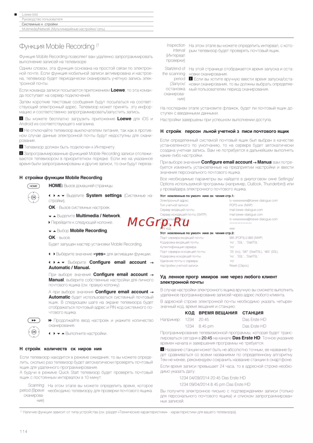 Loewe Bild 3.43 Light Grey — настройка функции Mobile Recording на телевизоре [114/204]