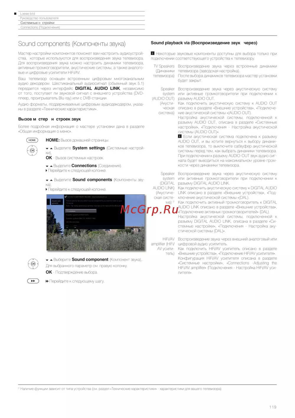 Loewe Bild 3.43 Light Grey — настройка звуковых компонентов для телевизора: руководство пользователя [119/204]