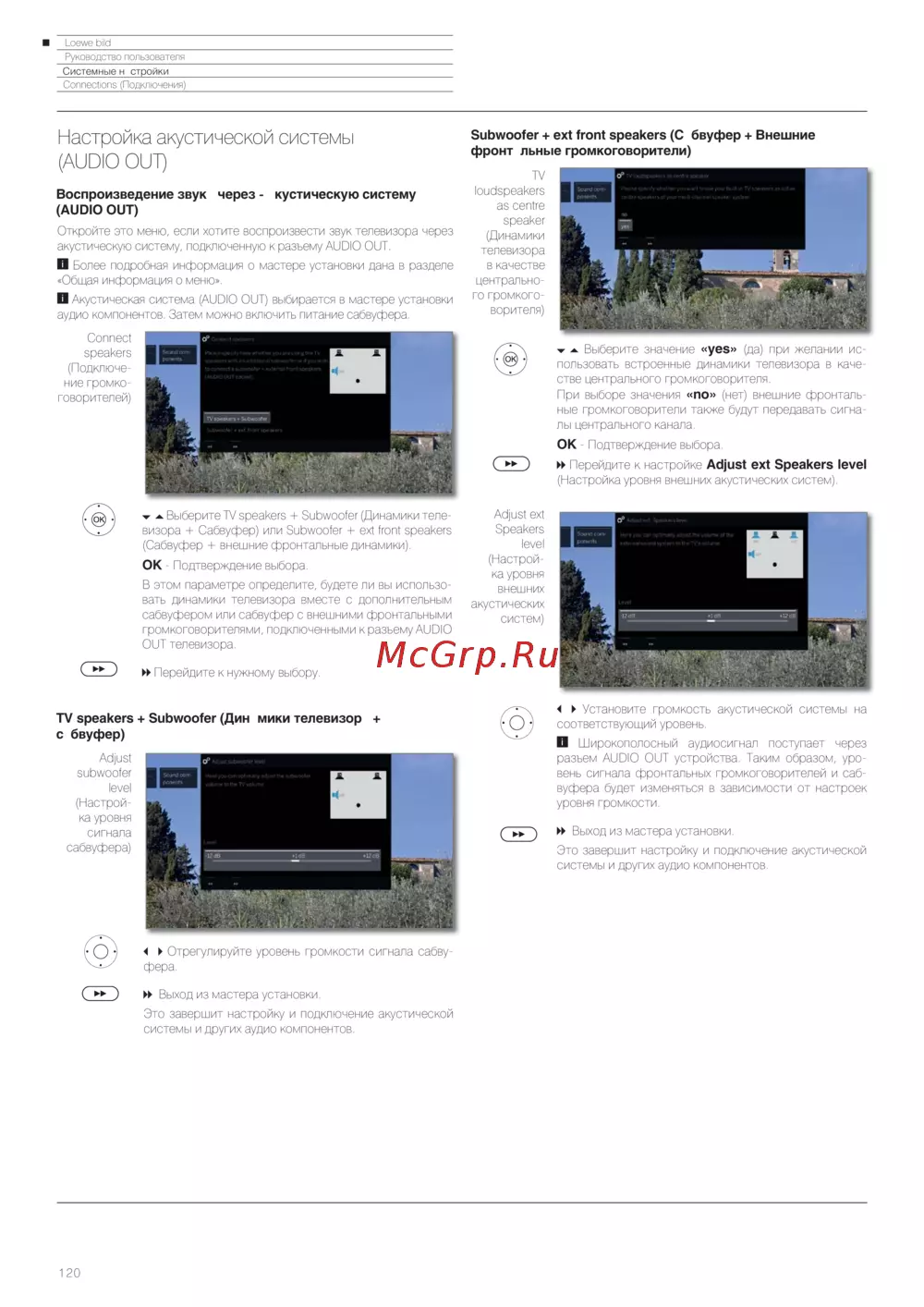 Loewe Bild 3.43 Light Grey — настройка акустической системы через разъем AUDIO OUT [120/204]