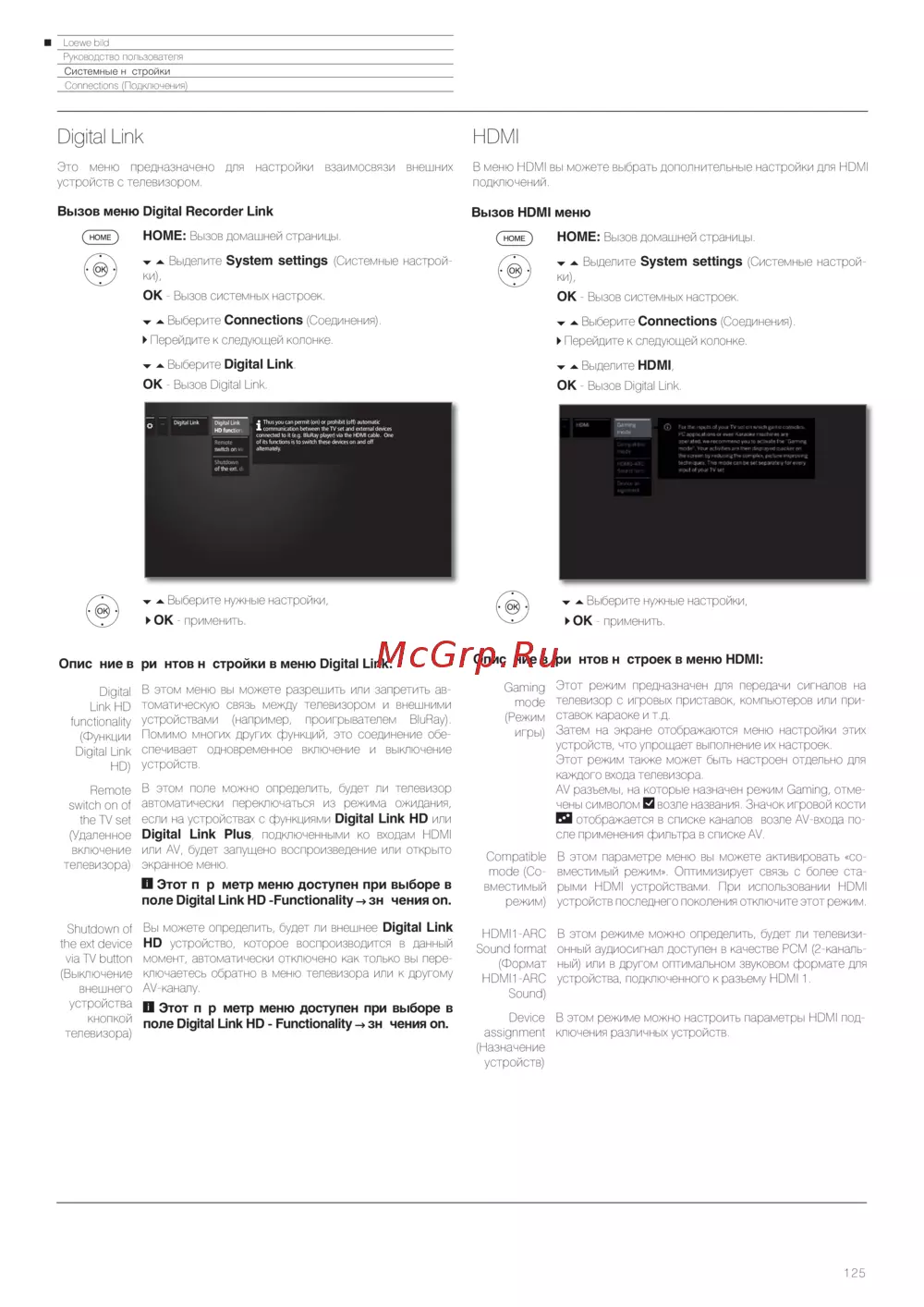 Loewe Bild 3.43 Light Grey — руководство пользователя: настройки Digital Link и HDMI [125/204]