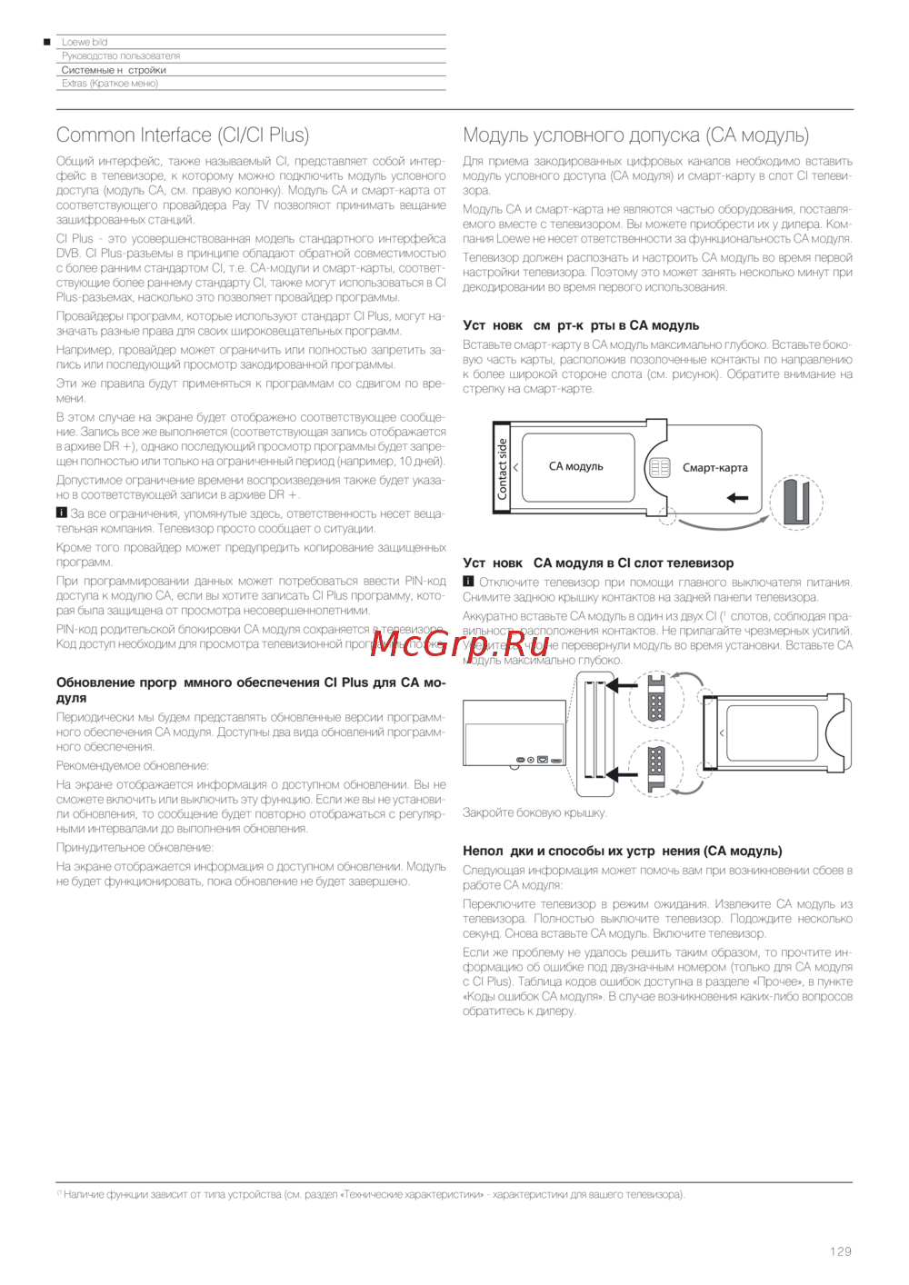 доступа (модуль CA, см. правую колонку). Модуль CA и смарт-карта от