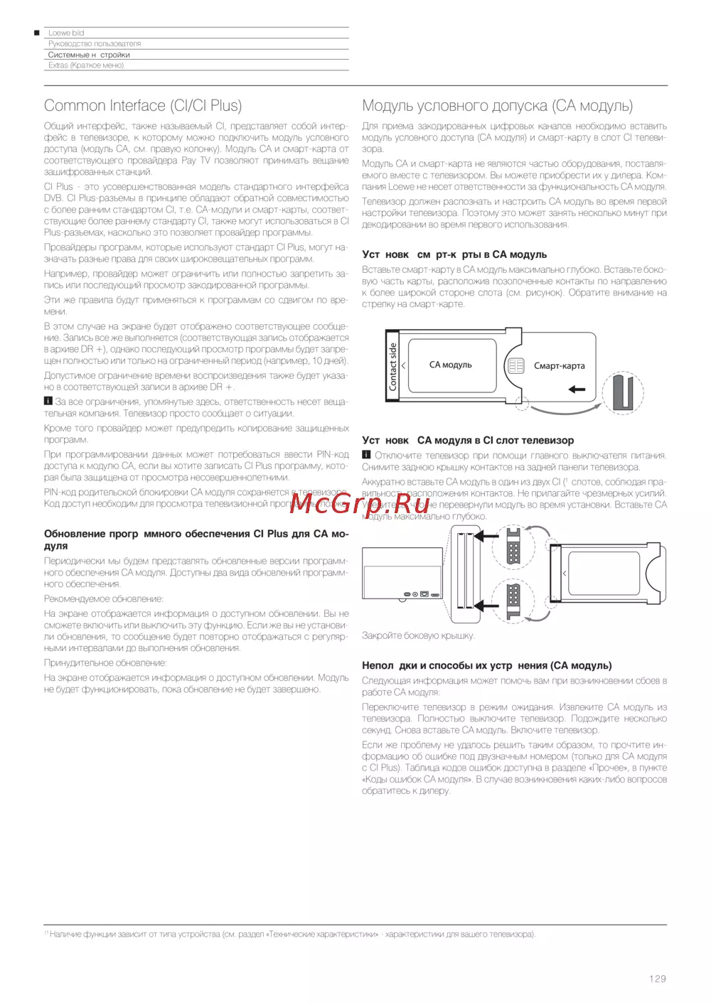 пания Loewe не несет ответственности за функциональность СА модуля.