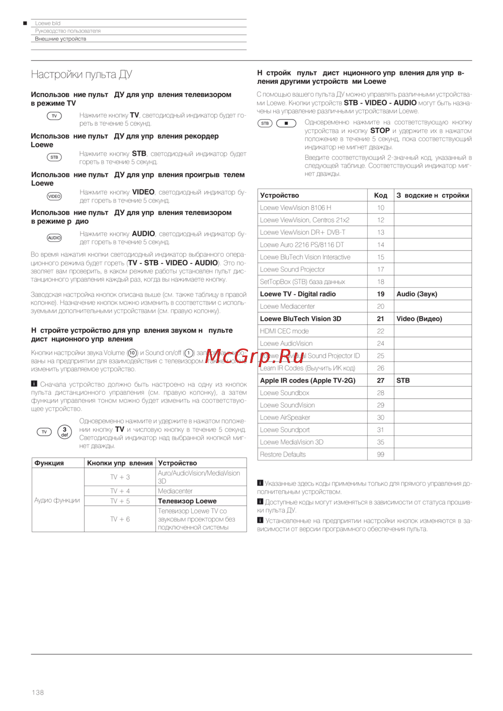 ми Loewe. Кнопки устройств STB - VIDEO - AUDIO могут быть назна-