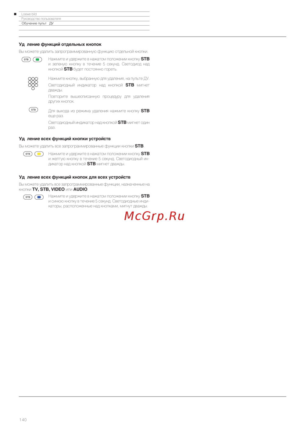 Вы можете удалить все запрограммированные функции кнопки STB.