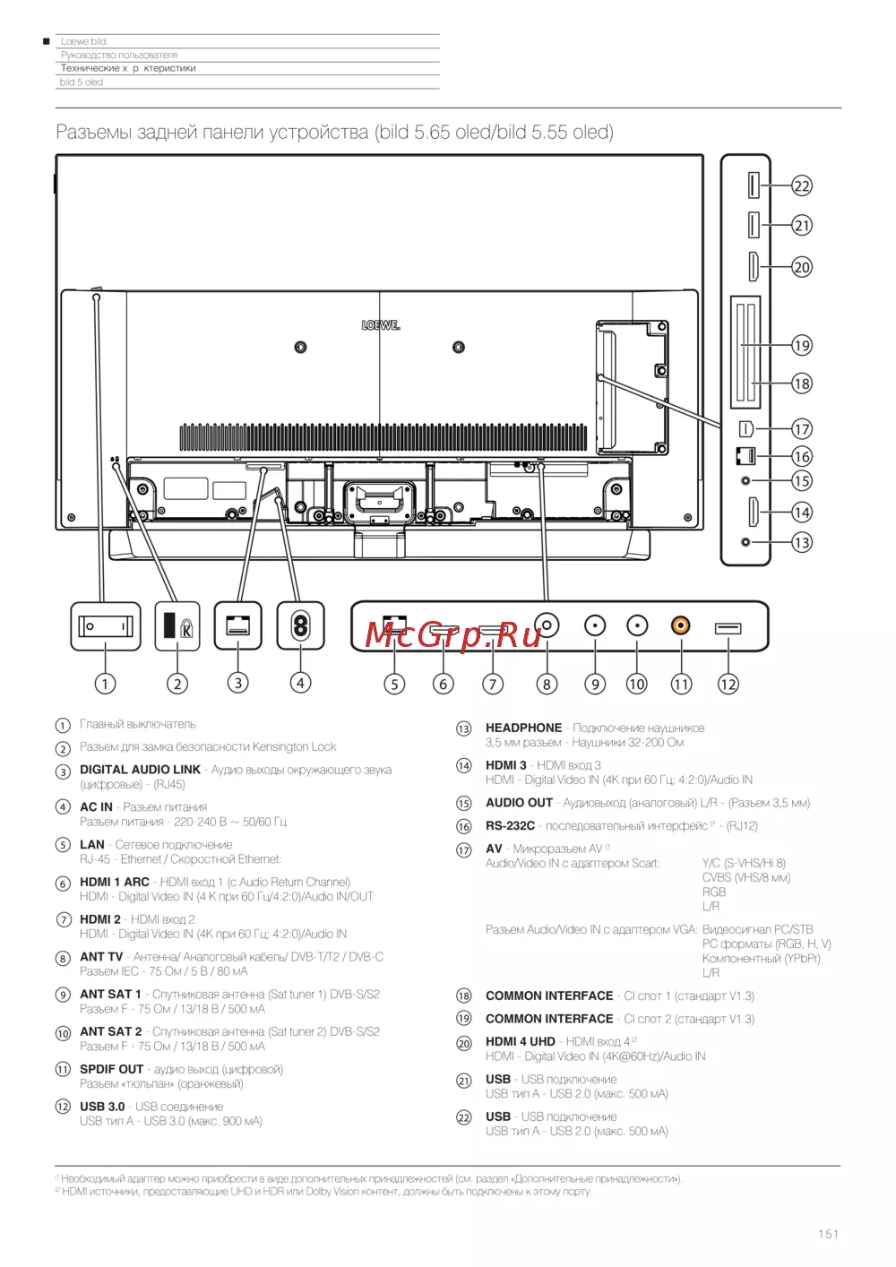 Loewe Bild 3.43 Light Grey [151/204] Разъемы задней панели устройства bild 5 5 oled bild 5 5 oled