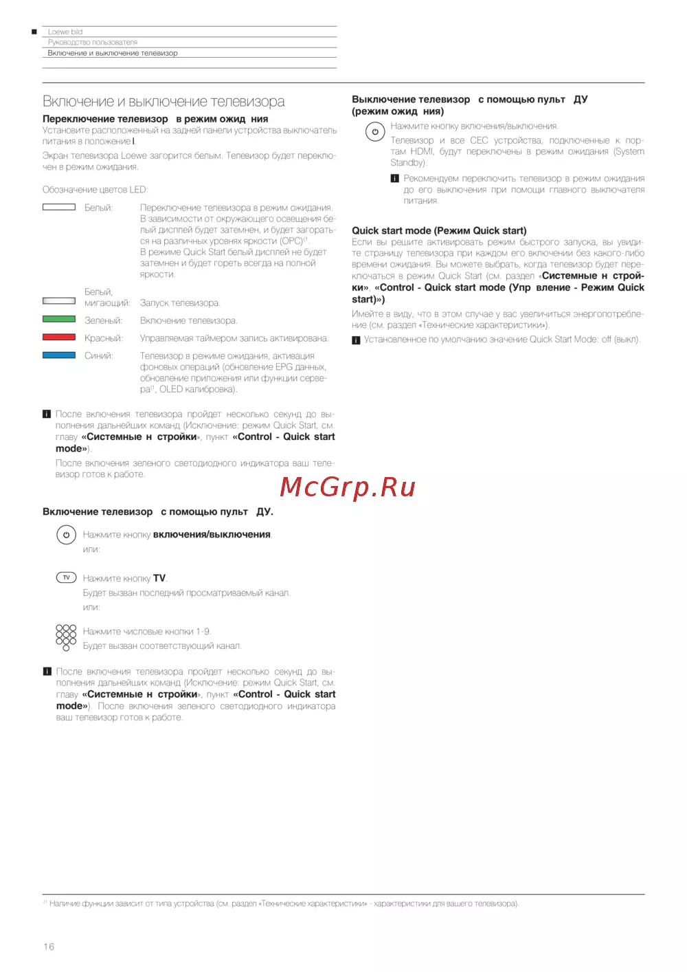 Узнайте, как правильно включать и выключать телевизор, а также использовать режим ожидания и Quick Start. Подробные инструкции и советы по управлению устройством.