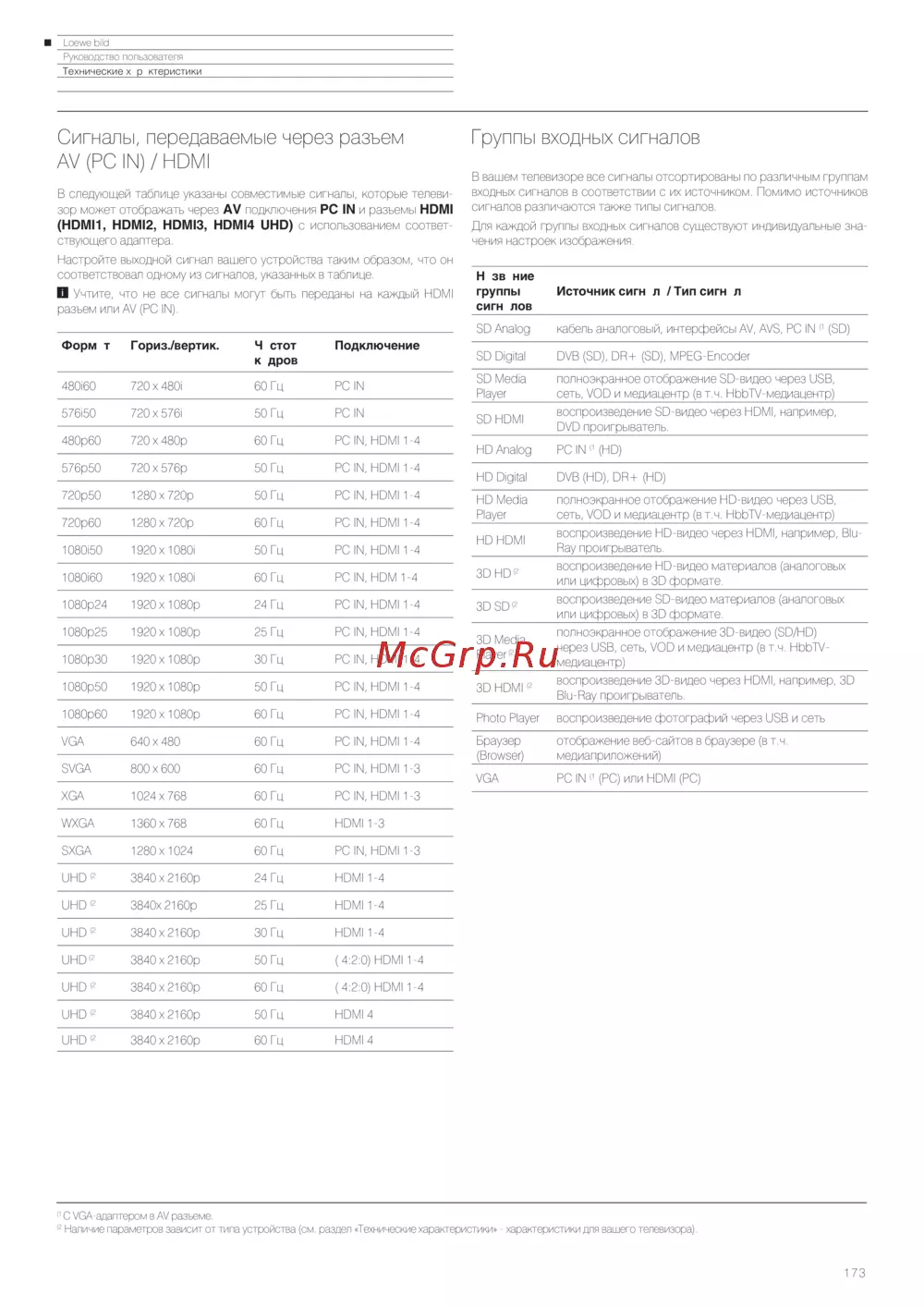 Loewe Bild 3.43 Light Grey [173/204] Сигналы передаваемые через разъем av pc in hdmi