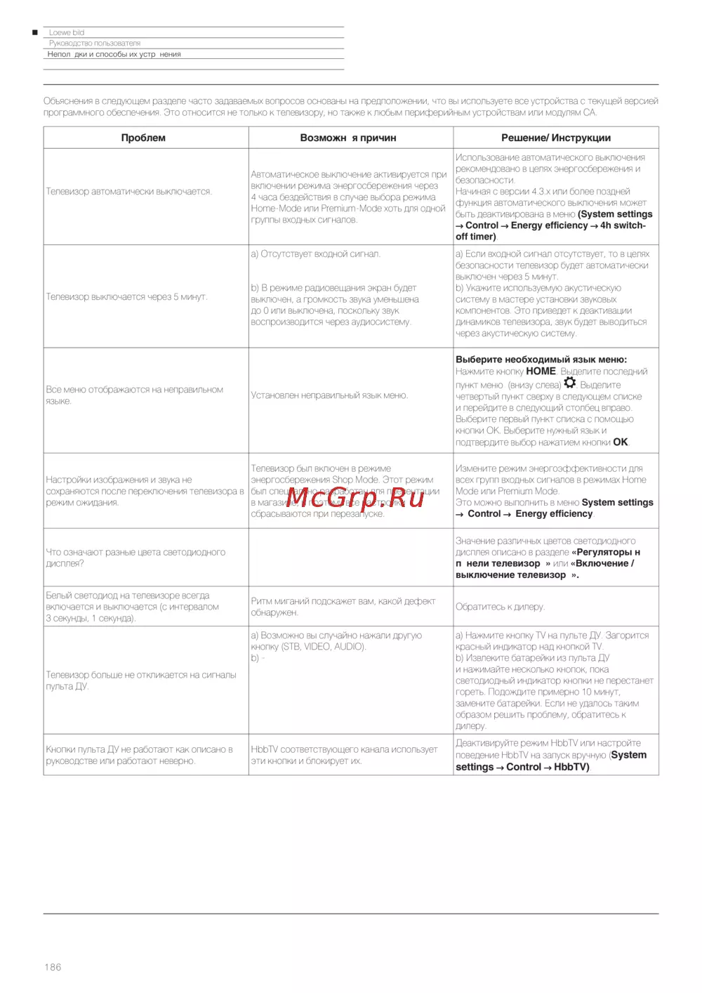 Loewe Bild 3.43 Light Grey — руководство пользователя: устранение неполадок телевизора [186/204]
