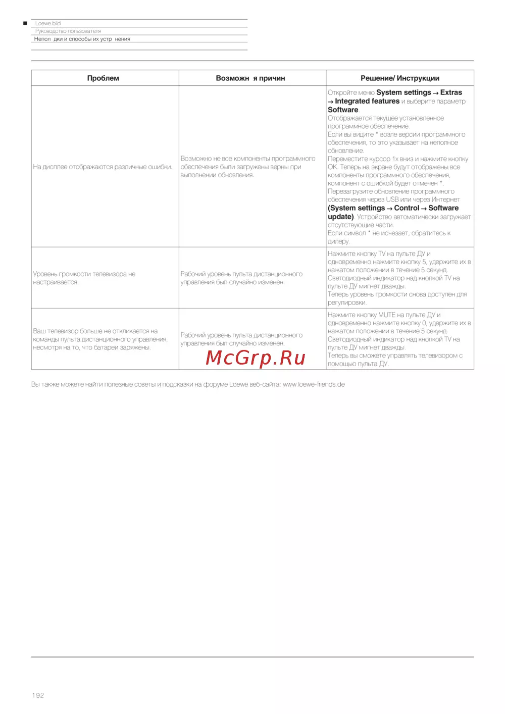Loewe Bild 3.43 Light Grey — руководство по устранению неполадок телевизора и пульта ДУ [192/204]