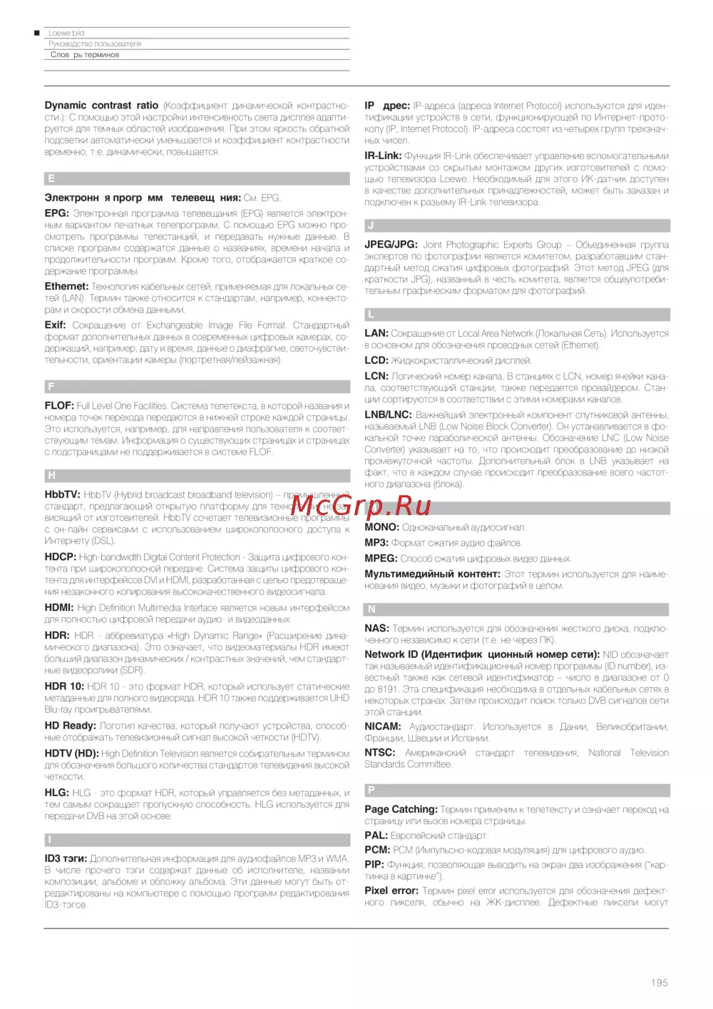 Loewe Bild 3.43 Light Grey — руководство пользователя: настройки и технологии телевизоров [195/204]