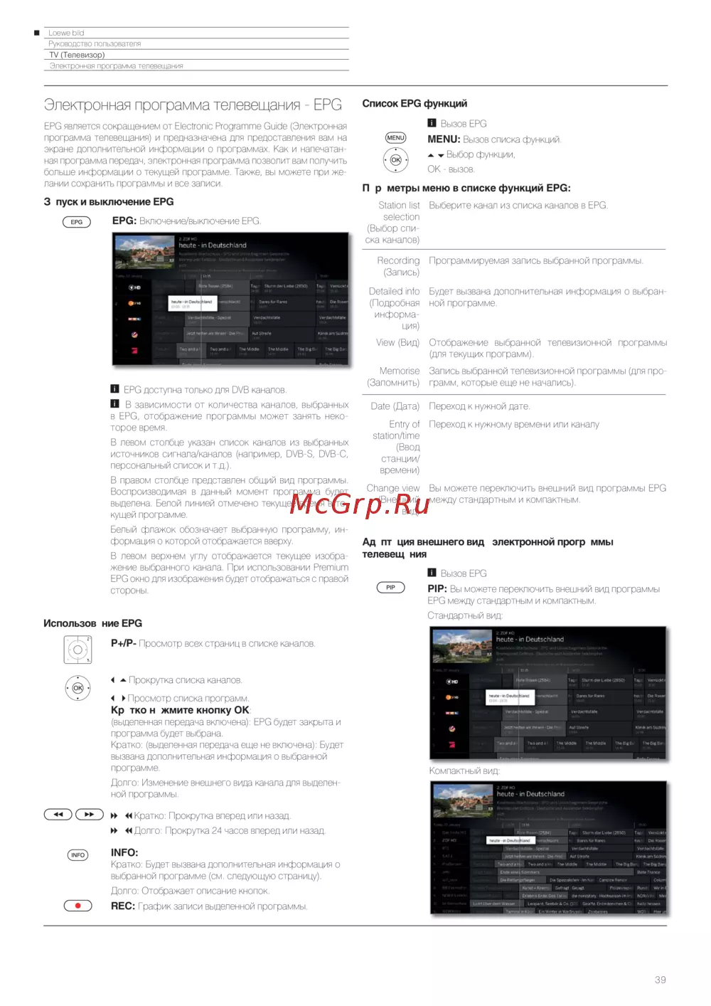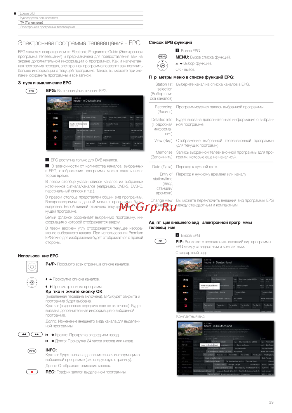 Loewe Bild 3.43 Light Grey — руководство пользователя: Электронная программа телевещания EPG [39/204]