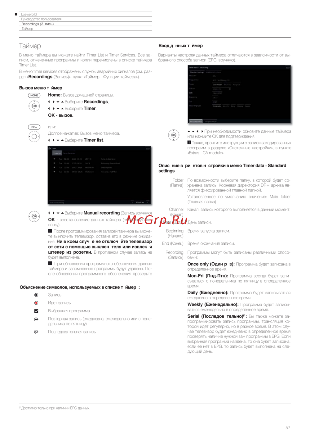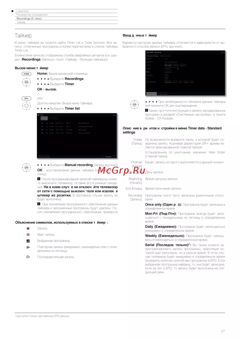 Loewe Bild 3.43 Light Grey — полное руководство по использованию таймера записи на телевизоре [57/204]