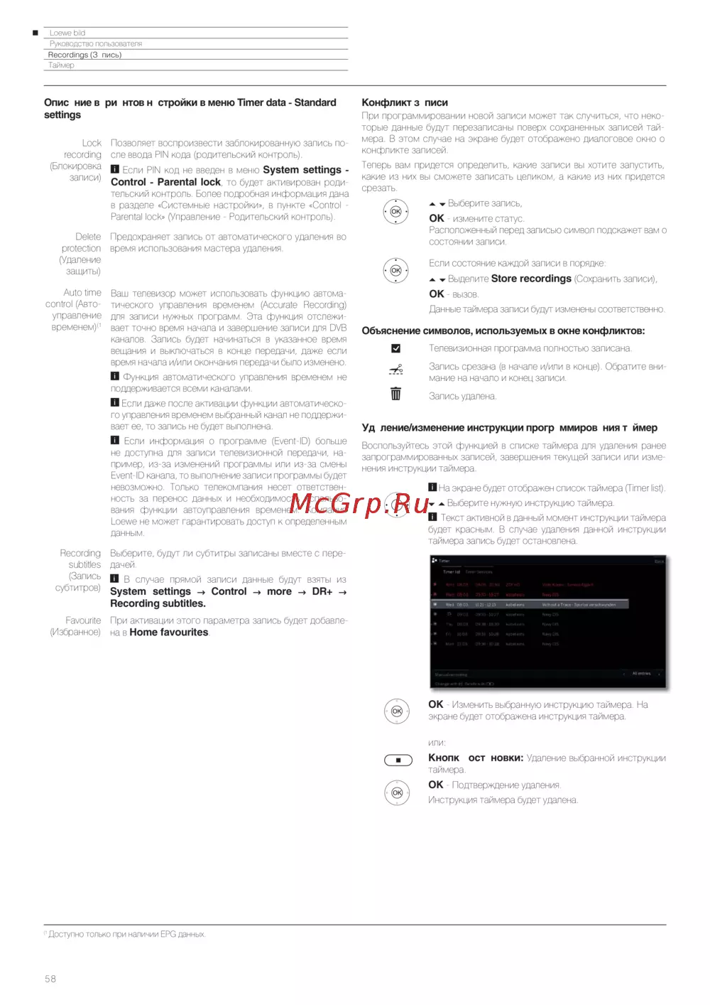 Loewe Bild 3.43 Light Grey — настройка таймера записи на телевизоре: руководство пользователя [58/204]