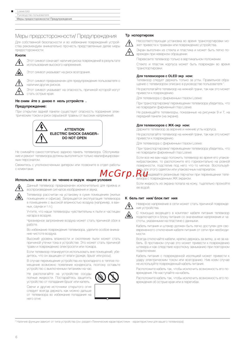 Loewe Bild 3.43 Light Grey — руководство пользователя: меры предосторожности для телевизоров [6/204]