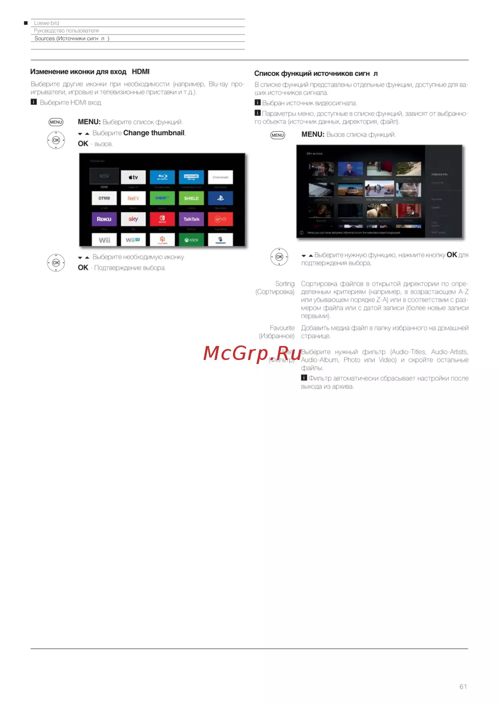 Loewe Bild 3.43 Light Grey — руководство пользователя: функции источников сигнала и меню [61/204]
