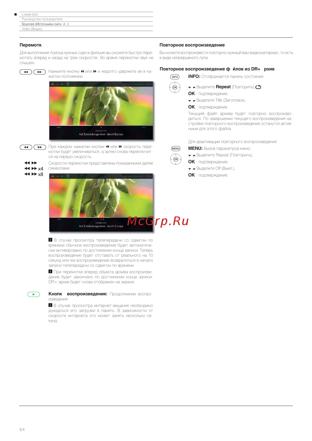 Loewe Bild 3.43 Light Grey — руководство пользователя: перемотка и повторное воспроизведение видео [64/204]