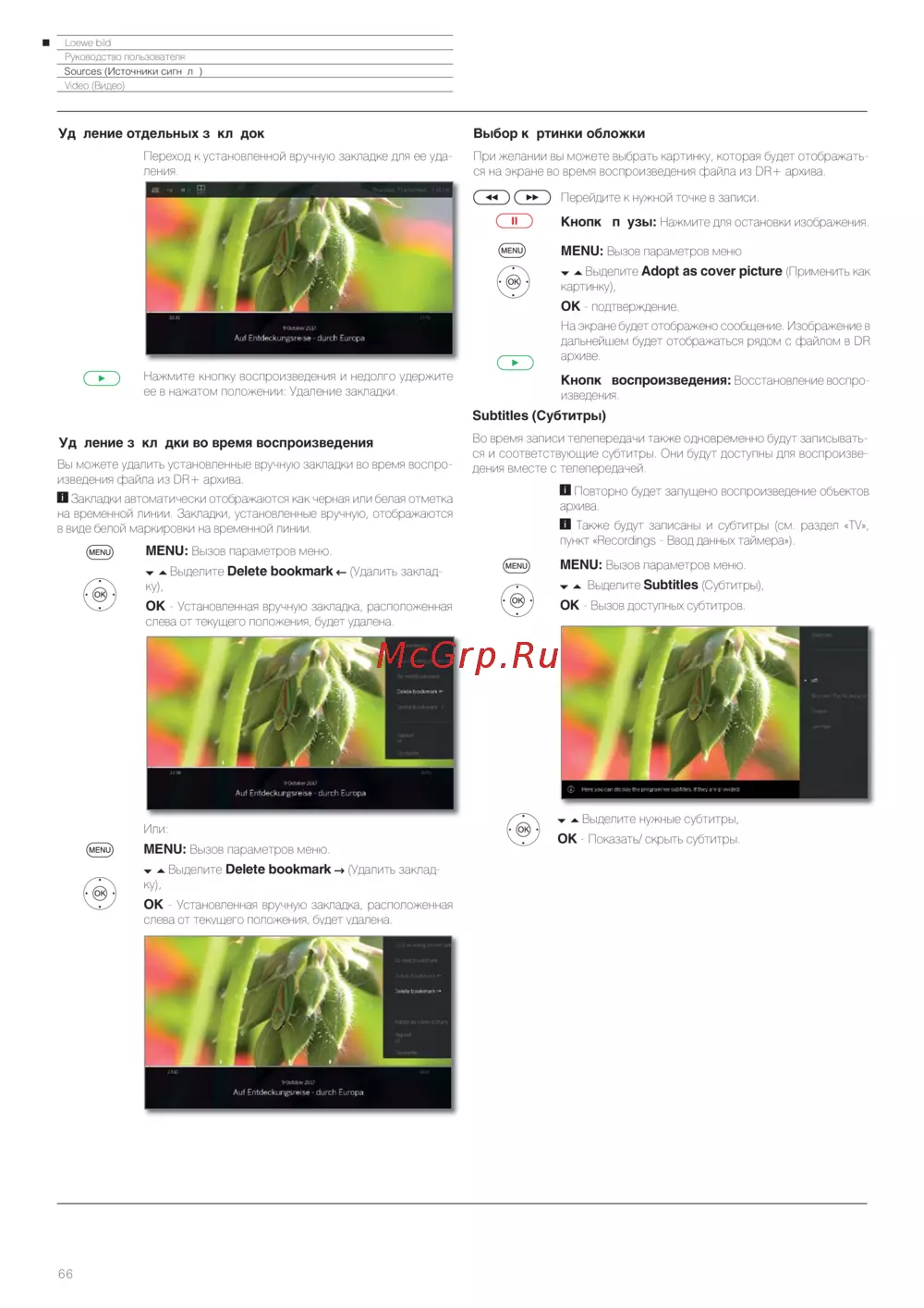 Loewe Bild 3.43 Light Grey — руководство пользователя: Удаление закладок и выбор обложки [66/204]