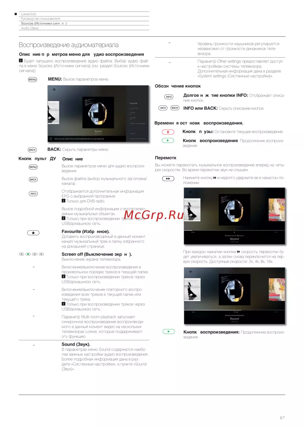 Loewe Bild 3.43 Light Grey — руководство пользователя: Воспроизведение аудиоматериала и настройки [67/204]