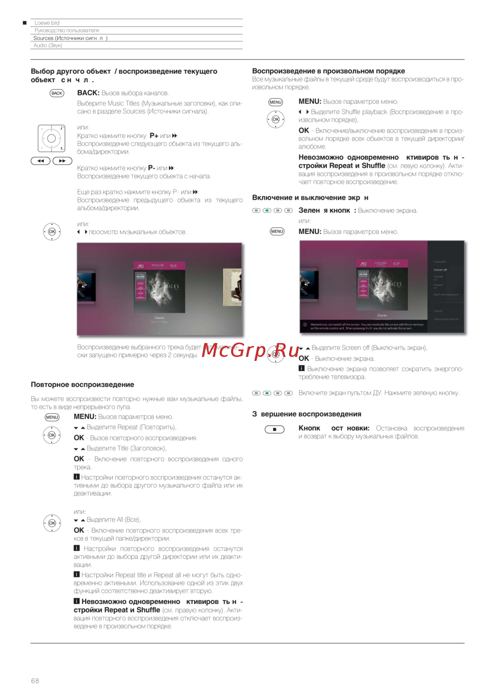 Loewe Bild 3.43 Light Grey — руководство пользователя: Воспроизведение музыки и настройки [68/204]