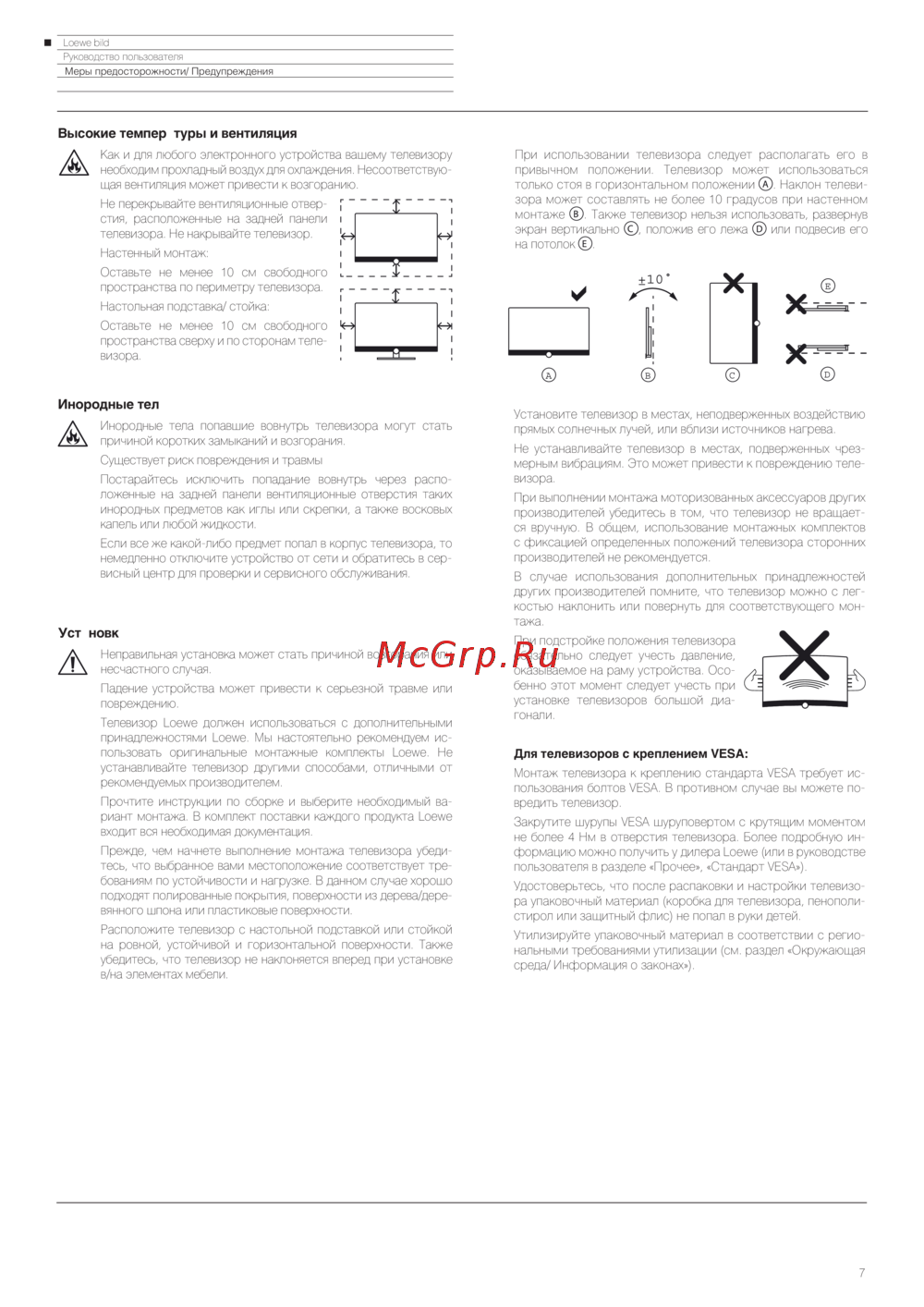 Loewe Bild 3.43 Light Grey — руководство пользователя: установка и безопасность телевизора [7/204]