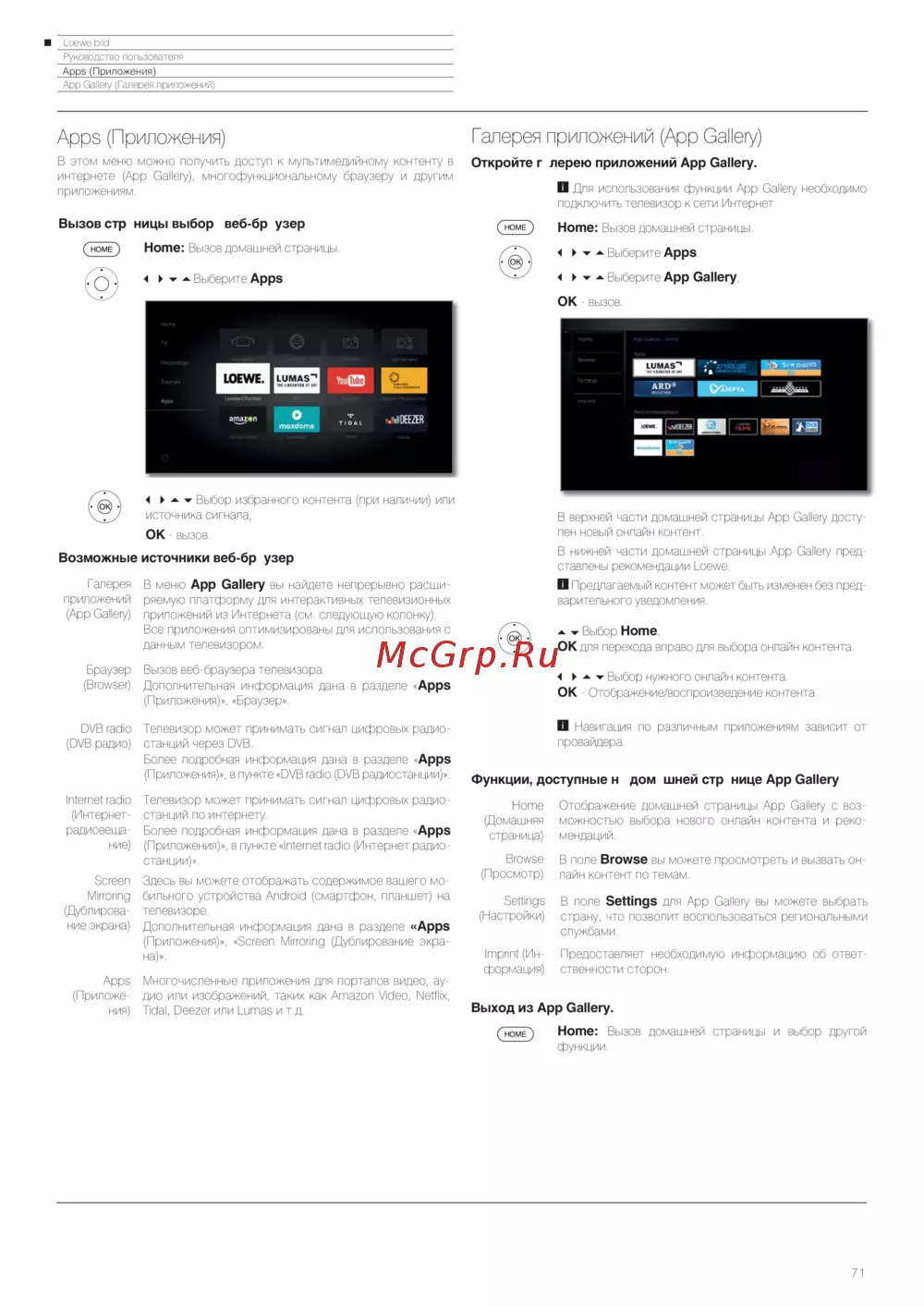 ![Loewe Bild 3.43 Light Grey [71/204] Функции доступные на домашней странице app gallery](/views2/1453304/page71/bg47.png)