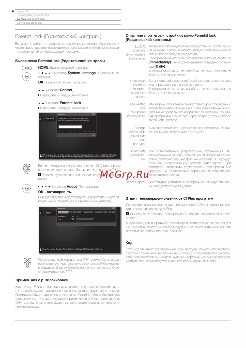 Loewe Bild 3.43 Light Grey — руководство по настройке родительского контроля на телевизоре [93/204]