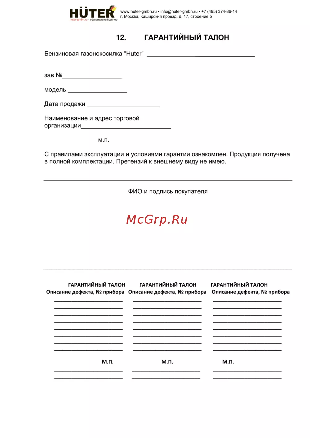 12. ГАРАНТИЙНЫЙ ТАЛОН