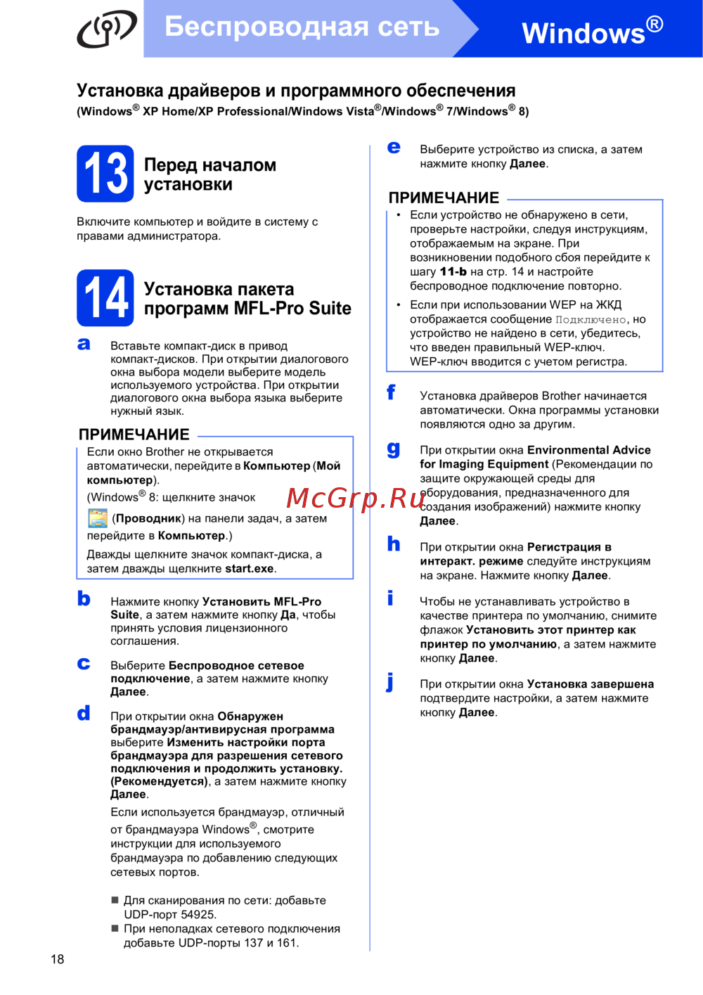 - Интерфейс беспроводной сети только для модели dcp j105 p.13