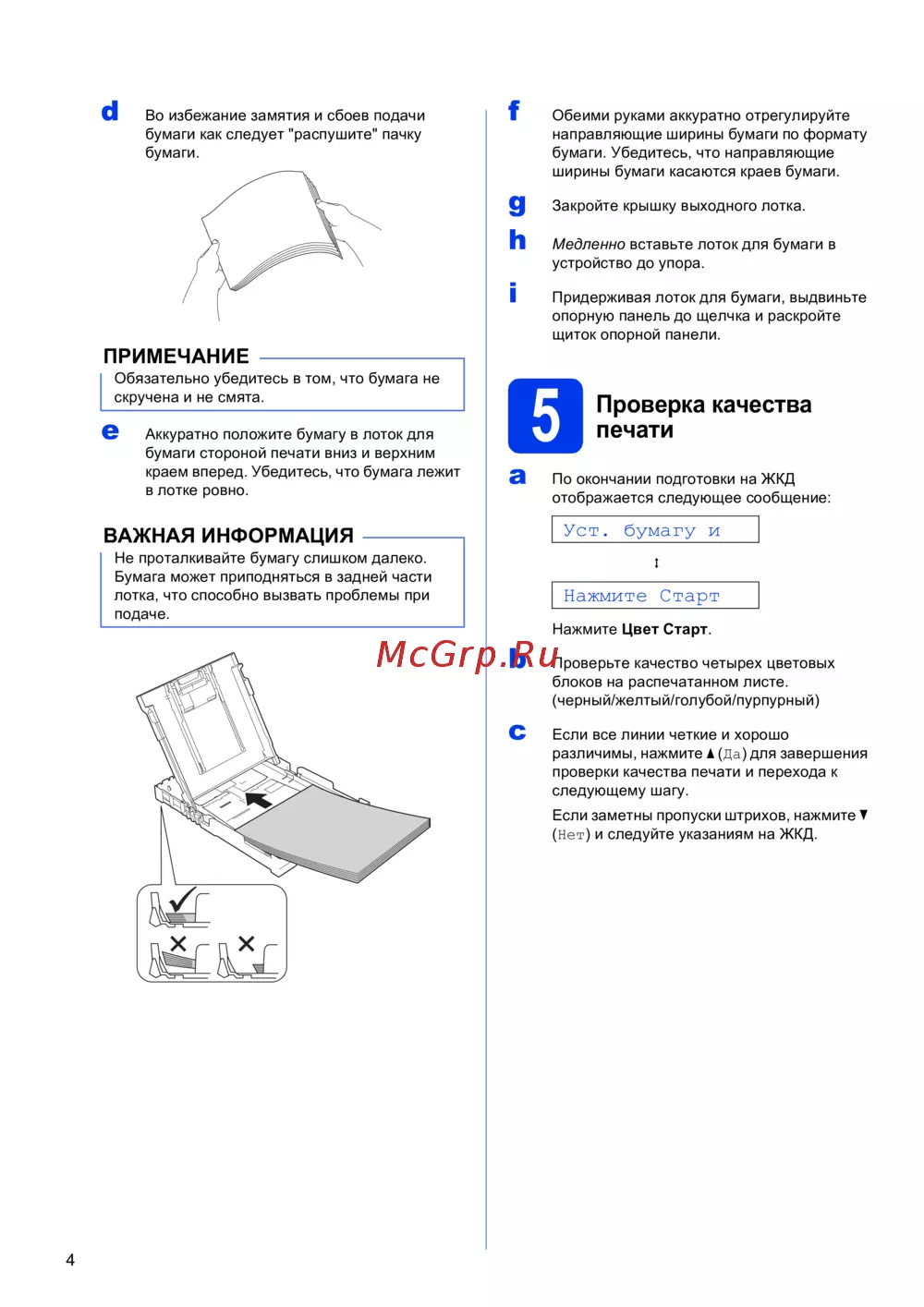 d Во избежание замятия и сбоев подачи