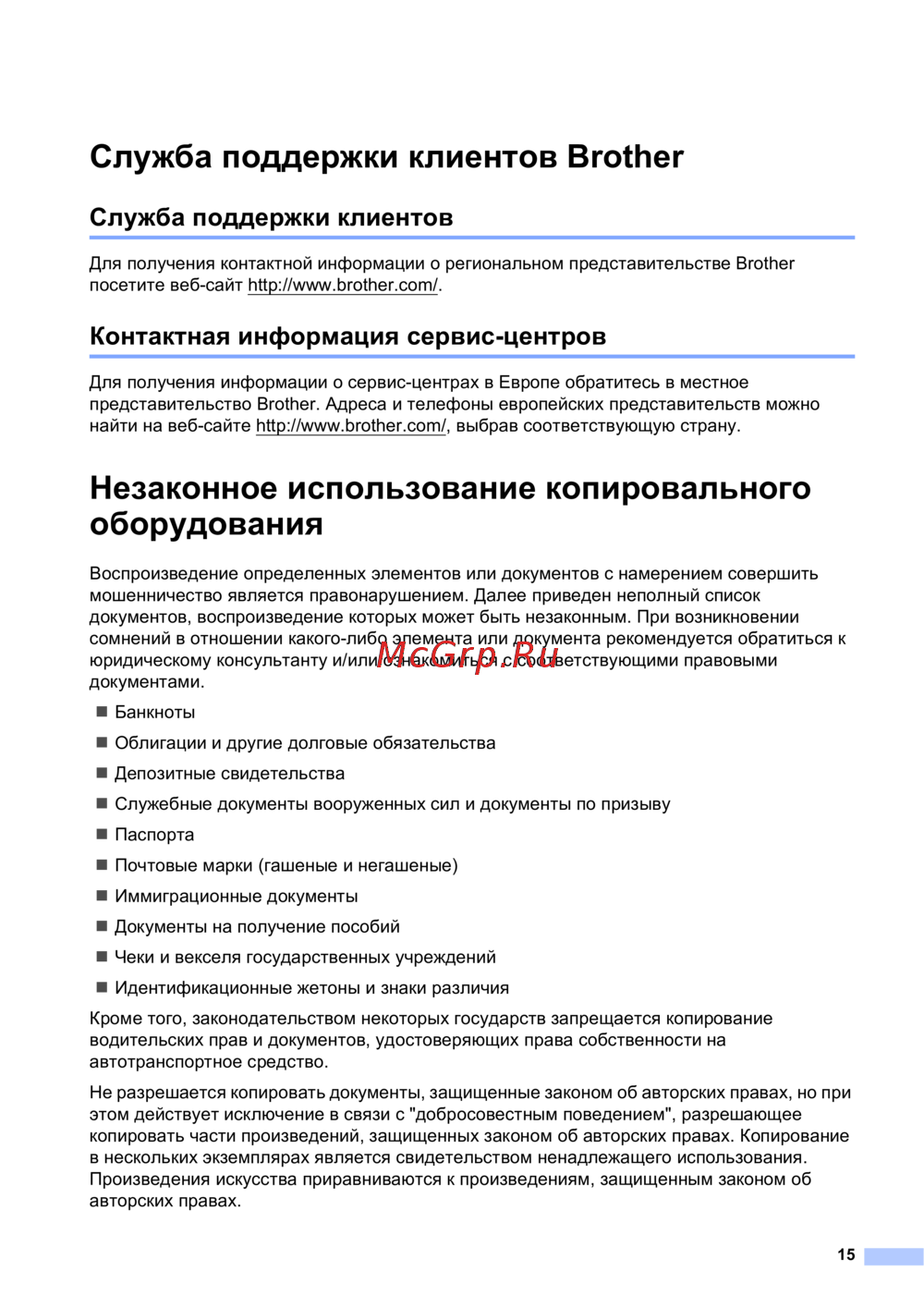 Brother DCP-J105 — служба поддержки клиентов и законность копирования документов [15/16]