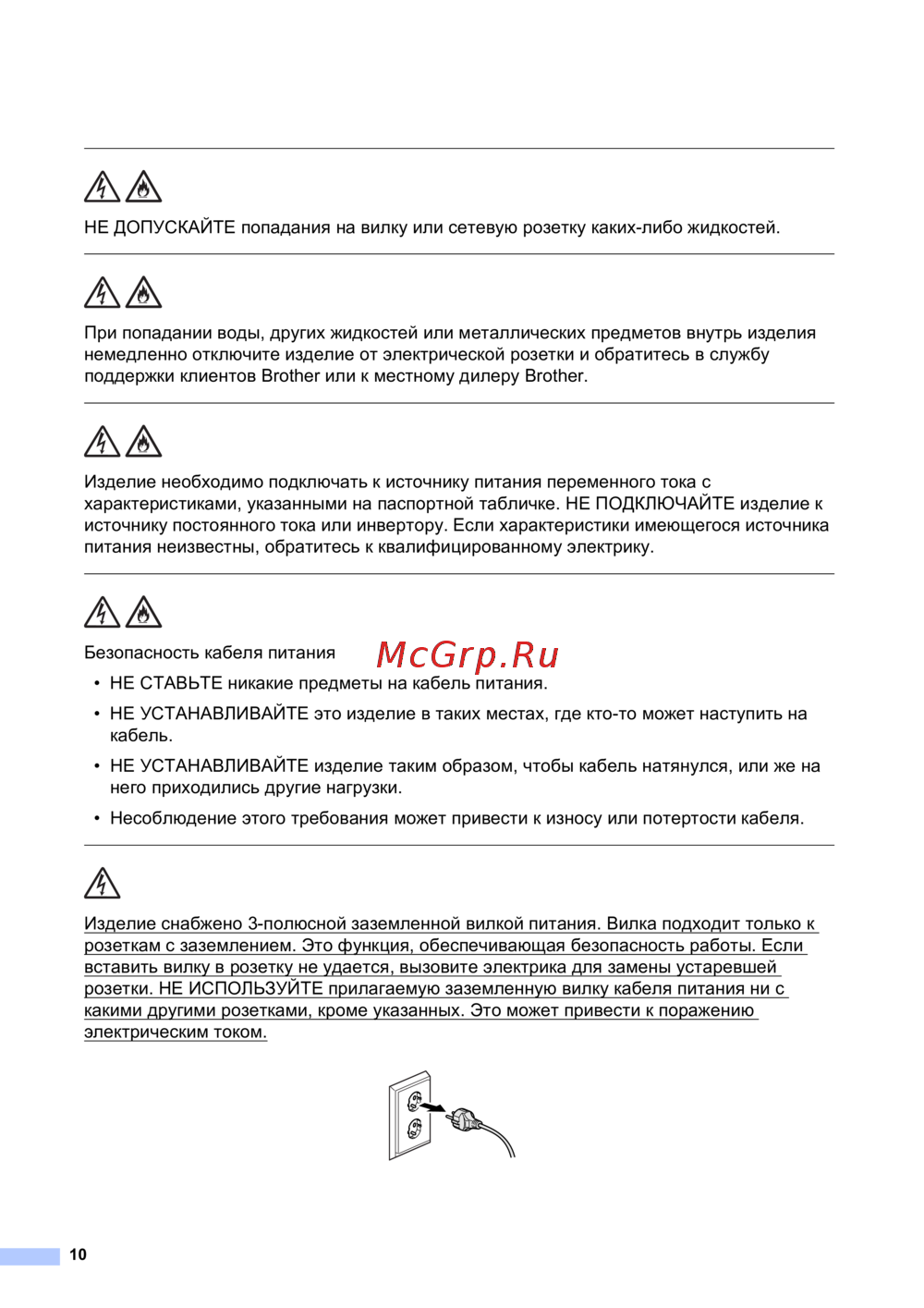 Brother DCP-T300 — правила безопасности при использовании электрических устройств [10/20]
