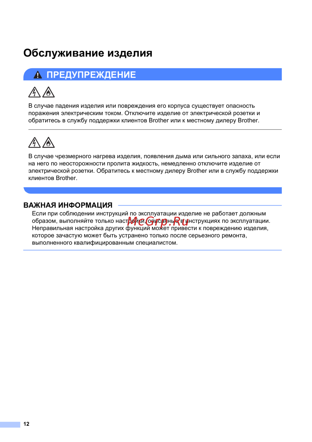 Brother DCP-T300 — правила безопасности и обслуживания электрических устройств [12/20]