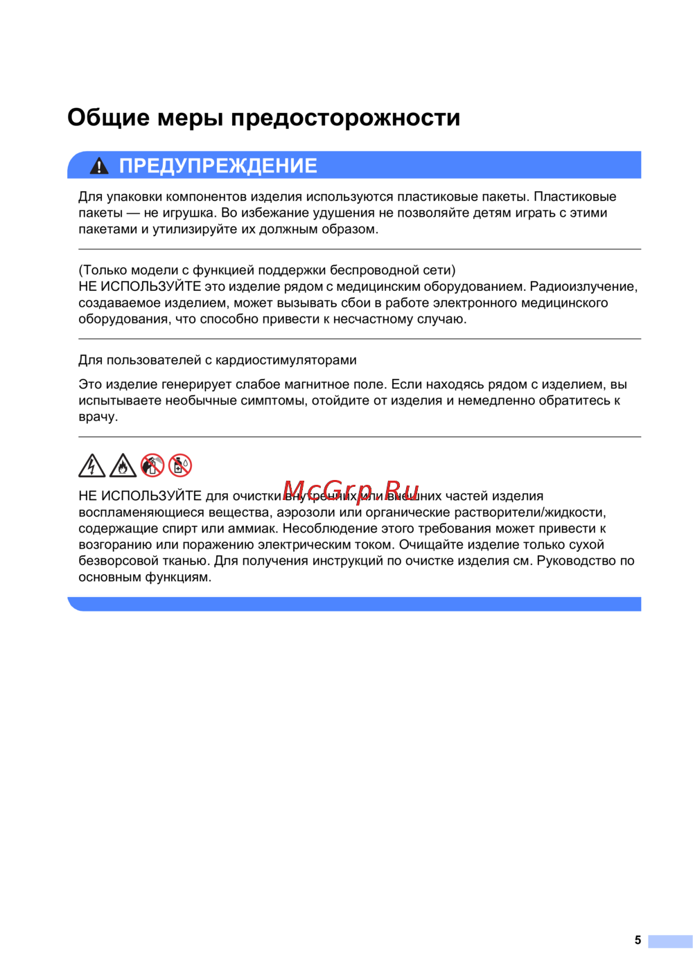 Brother DCP-T300 — общие меры предосторожности при использовании изделия [5/20]