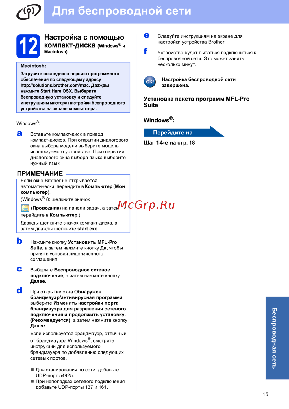 - Для беспроводной сети p.15