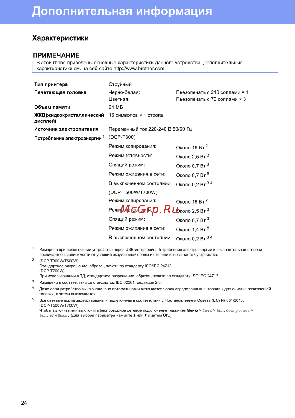 Brother DCP-T500W — характеристики струйного принтера: потребление и режимы работы [24/26]