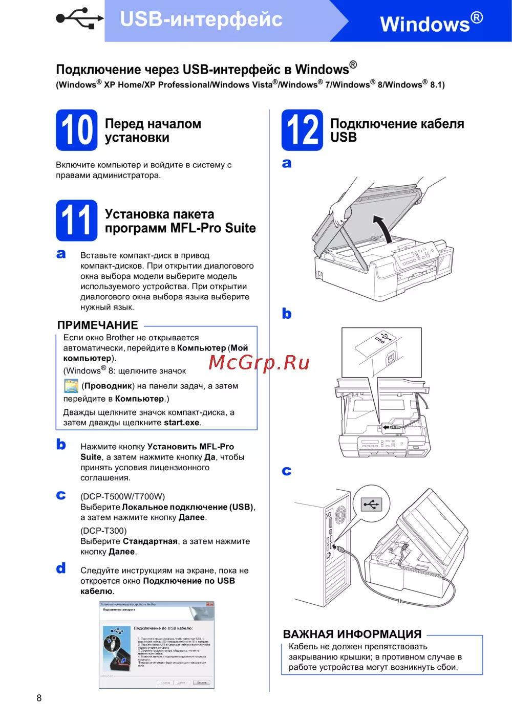 Brother DCP-T500W — инструкция по установке USB-интерфейса для Windows [8/26]