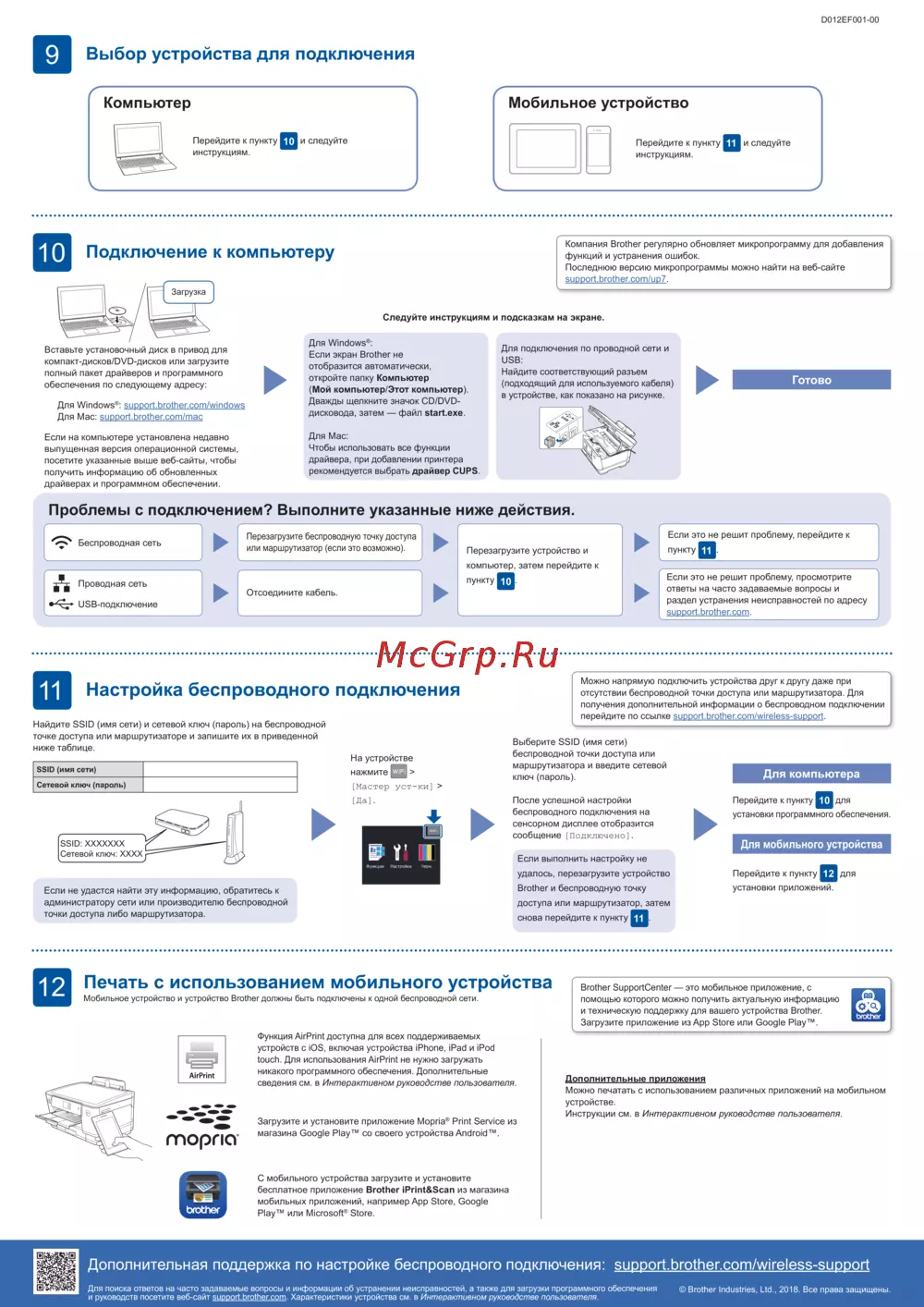 - Дополнительная поддержка по настройке беспроводного подключения support brother com wireless support p.2