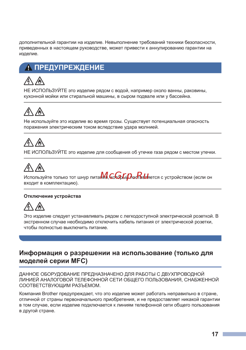 - Информация о разрешении на использование только для моделей серии mfc p.17
