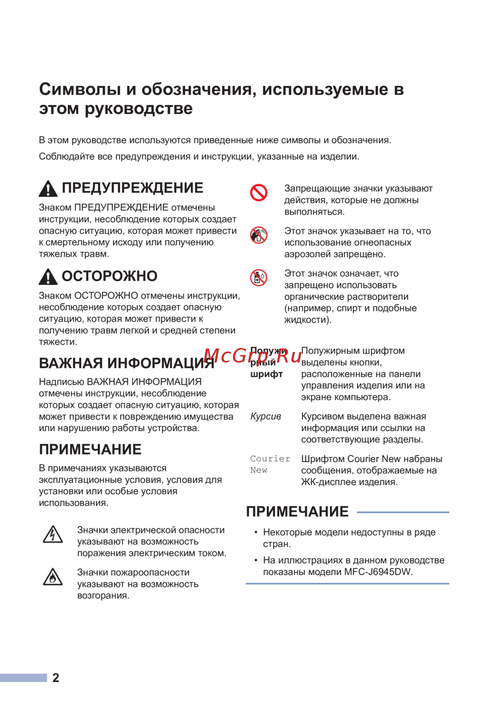 - Символы и обозначения используемые в этом руководстве p.2