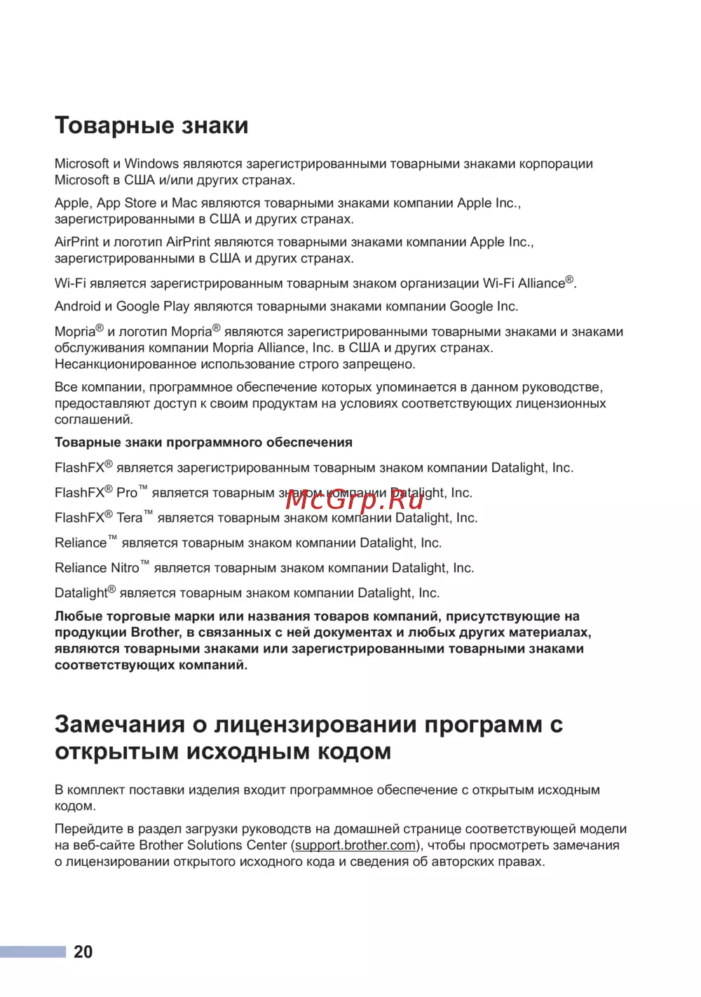 - Товарные знаки p.20